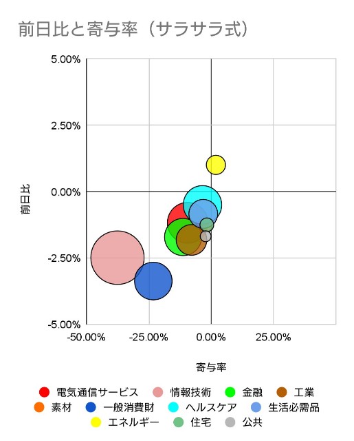 ウクライナへのサイバー攻撃が確認されてからは、情報インフラを供給する情報通信サービス系、それを利用した一般消費財系はさらに下げが進んだ感じ。